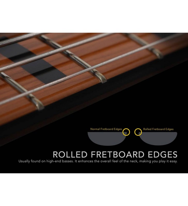Onderdelen zijn onder meer een paar Ibanez Dynamix passieve pickups met een jazz pickup bij de brug en een precisie pickup bij de hals, een B10 brug met 19 mm snaarafstand, een plastic topkam en Ibanez stemmechanieken.