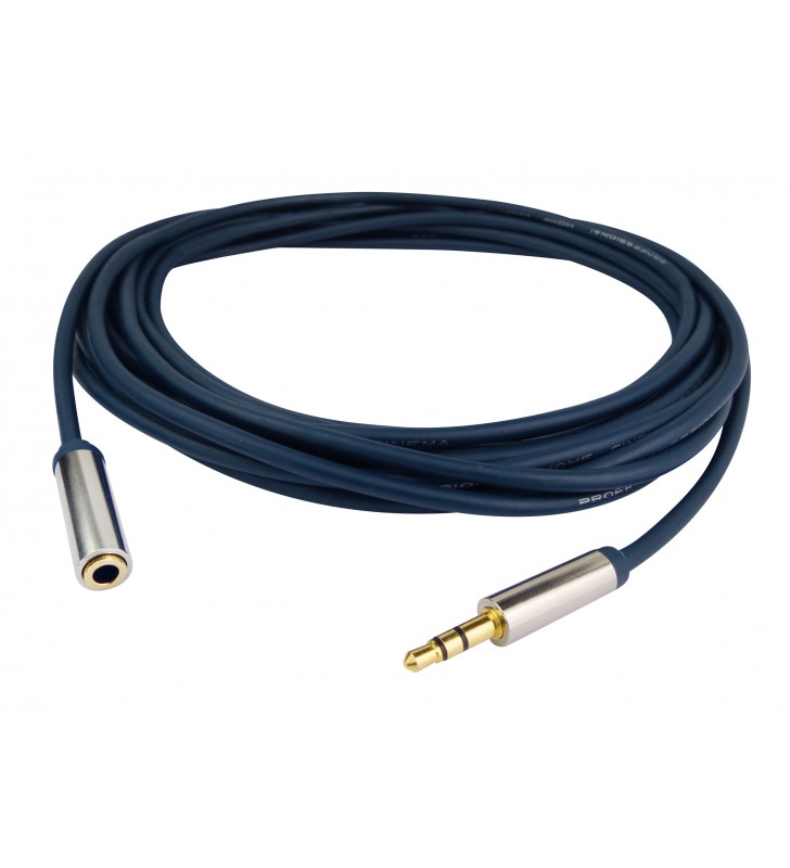 3,5 mm stereo jack verlengkabel met vergulde contacten en verchroomd metaal.