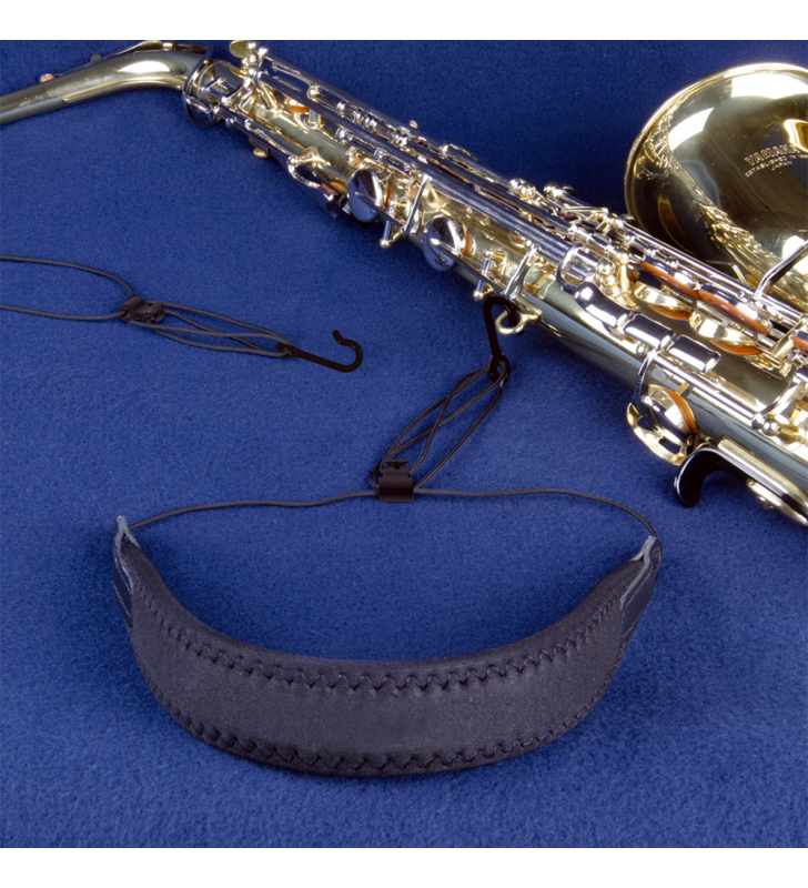 De gevoerde neopreen Tux Strap ™ biedt comfort en ondersteuning in een slank ontwerp (1,3 "breed) dat gemakkelijk kan worden verborgen onder een pak tijdens het spelen. De aangepaste schuif is eenvoudig met twee vingers aan te passen en biedt toch een uniek vergrendelingssysteem om de perfecte speelpositie te behouden Het interne controle-reksysteem dat in de neopreen pad is verwerkt, zorgt ervoor dat uw instrument 50% lichter en 100% comfortabeler aanvoelt. Probeer het eens!