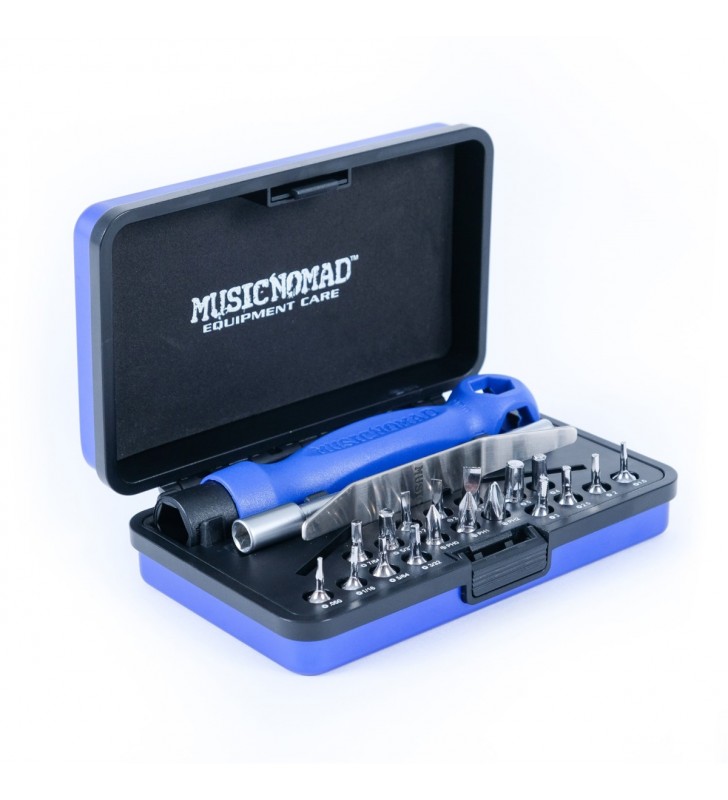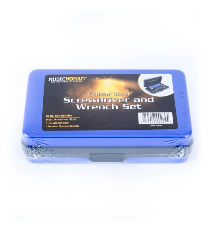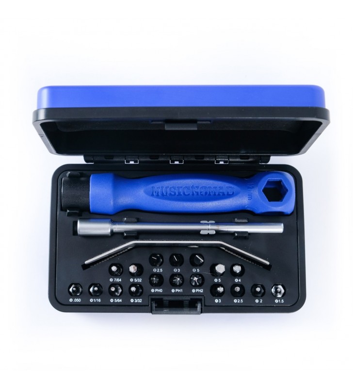 MusicNomad's Premium Guitar Tech Schroevendraaier en Wrench Set biedt ongeëvenaarde veelzijdigheid in één compacte, robuuste koffer. Speciaal ontworpen voor gitaren en wordt geleverd met 18 schroevendraaierbits, 7 inbussleutelmaten, plus onze Premium steeksleutel.