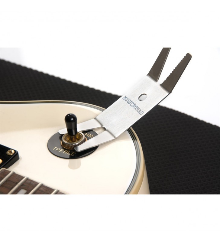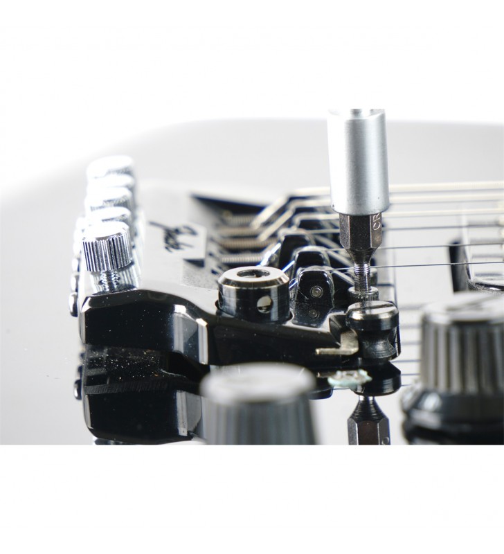 Perfect voor het maken van aanpassingen aan al uw gitaarhardware zoals: tuners, jacks, potten, bruggen, pickups, staartstukken, snaargeleiders, slagplaten, tremolo's en meer. Onze ergonomische, grote handgreep is gemaakt van sterk ballistisch nylon materiaal dat uw hardware niet bekrast of deukt en is ontworpen voor de meest populaire maten inbussleutels. Hij kan zelfs moeren aandraaien in verzonken potten en verzonken krikken zoals telecups. Dat is MusicNomad-kwaliteit - de lat hoger leggen in de zorg voor apparatuur.