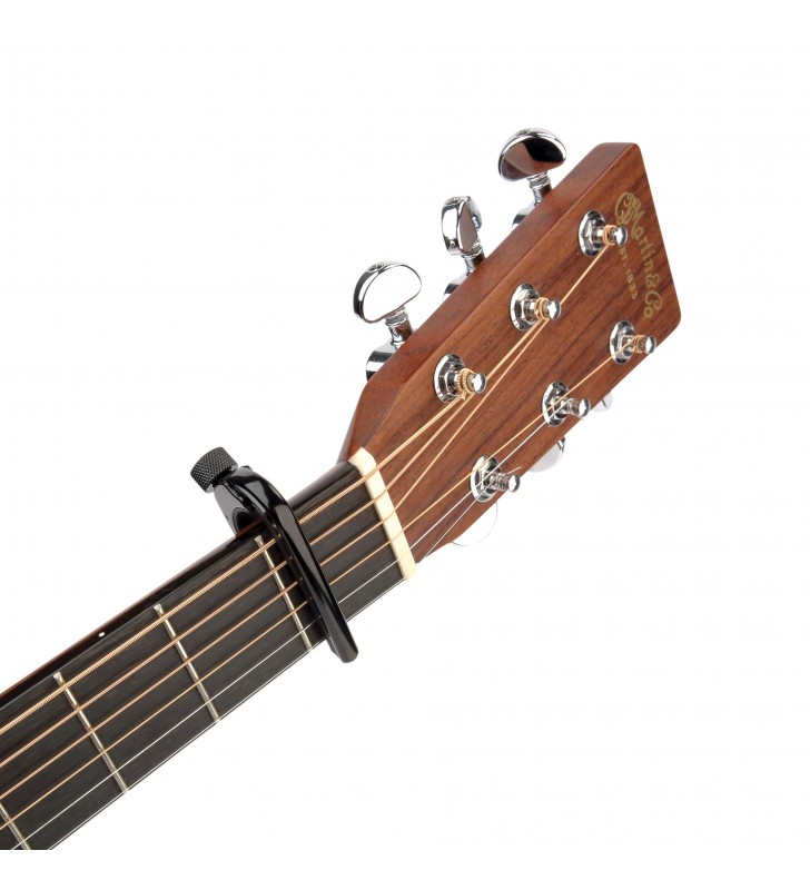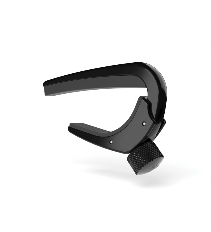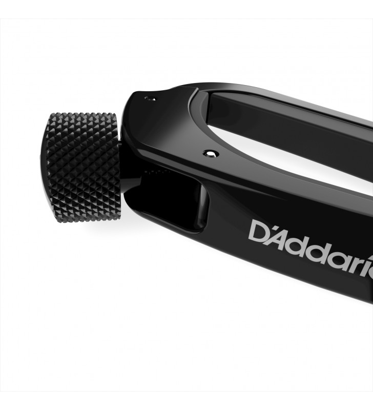 De D'Addario Pro Capo is gemaakt van vliegtuigaluminium voor gebruik op akoestische en elektrische 6- en 12-snarige gitaren. De Pro Capo zorgt voor een zoemvrije, gestemde prestatie bij elke fret. Het gepatenteerde micrometer-aanpassingsmechanisme stelt de speler in staat om de exacte spanning in te stellen die nodig is voor heldere klanken zonder overmatige kracht in elke positie op de hals. Dit vermindert de noodzaak om uw gitaar opnieuw te stemmen tijdens en na capo-gebruik aanzienlijk. De gestroomlijnde constructie kan het zwaarste speel- of tourschema aan en voegt zeer weinig extra gewicht of belemmering toe aan het instrument.
