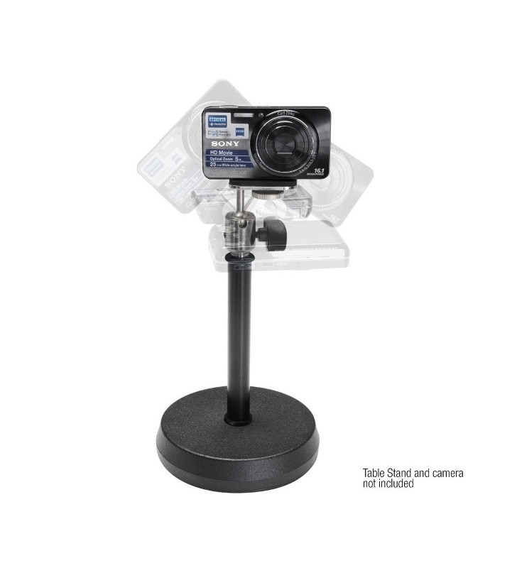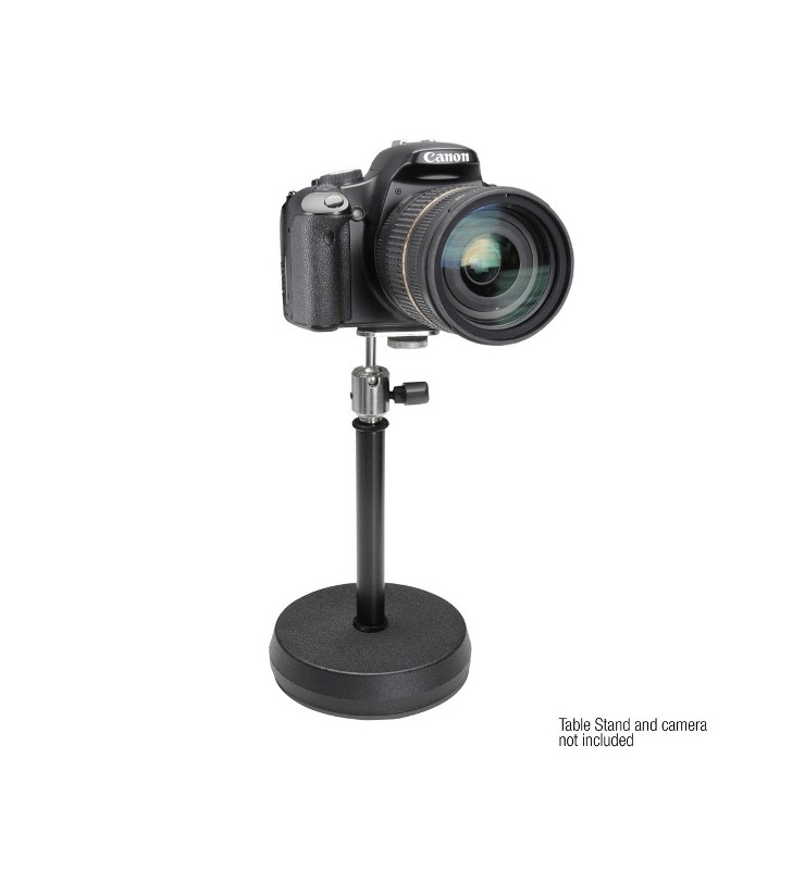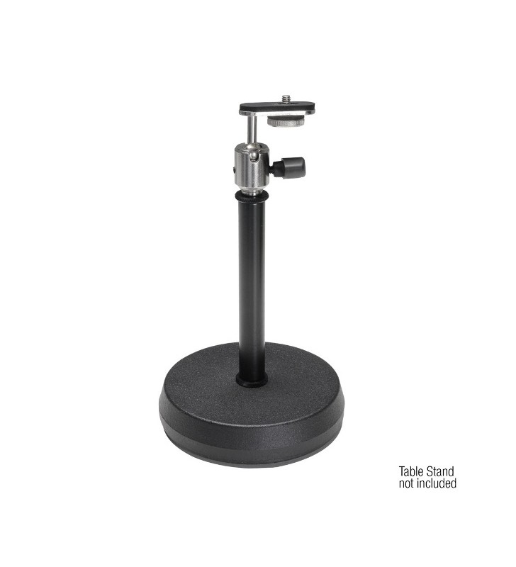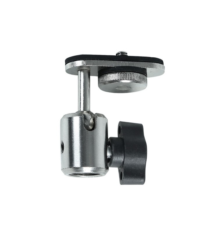 Microfoonstandaardadapter voor camera, camcorder, mobiele audiorecorder of andere compatibele apparatuur met een 1/4" schroefdraad. Kan worden gemonteerd op alle microfoonstatieven met 5/8" schroefdraad. De kogelkop maakt onafhankelijk pannen en kantelen mogelijk met 360° panbeweging en 180° kanteling.