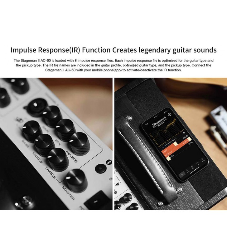 De Stageman II AC-60 heeft 2 kanalen, beide met een EQ gebaseerd op akoestische gitaar en microfoons. Hierdoor heeft de amp een natuurlijke sound wat belangrijk is voor akoestische instrumenten en zang.
