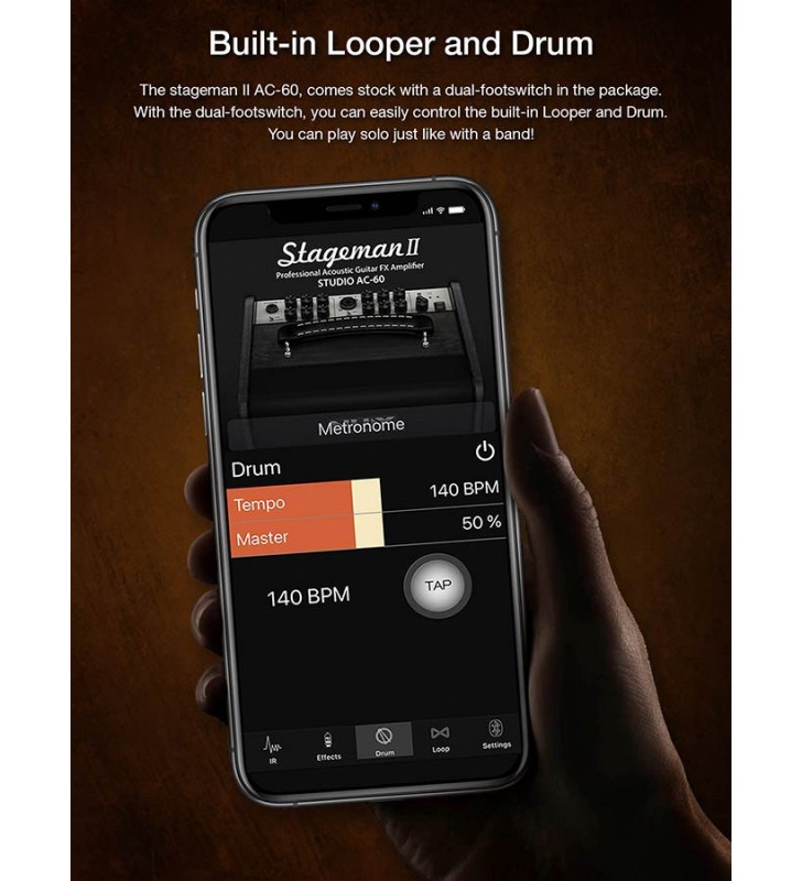 Met de Send/Return is er ook de mogelijkheid je eigen effecten te gebruiken op de amp. Via de App is de Stageman II AC-60 op afstand in te stellen wat handig kan zijn in live situaties. Een veelzijdige compacte versterker die veel te bieden heeft.