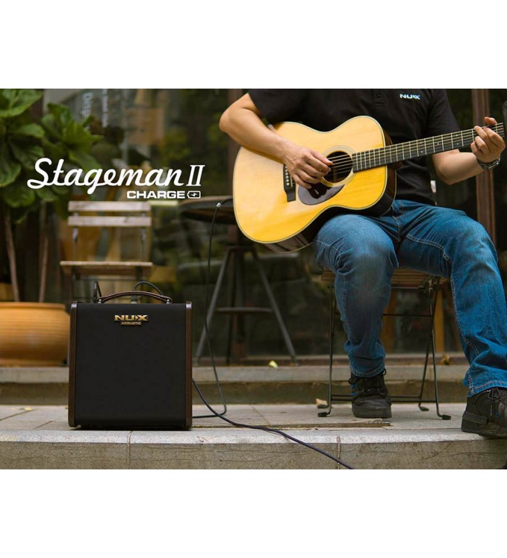 De oplaadbare versterker NUX Stageman II is de perfecte metgezel voor een akoestisch-elektrische gitaar wanneer je overal wilt kunnen optreden en luid en duidelijk gehoord wilt worden zonder een hoop apparatuur mee te slepen. Met een krachtige lithiumbatterij is de Stageman II klaar voor wel 4 uur aan speelduur.