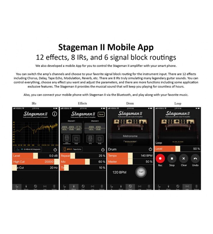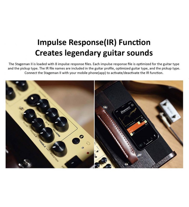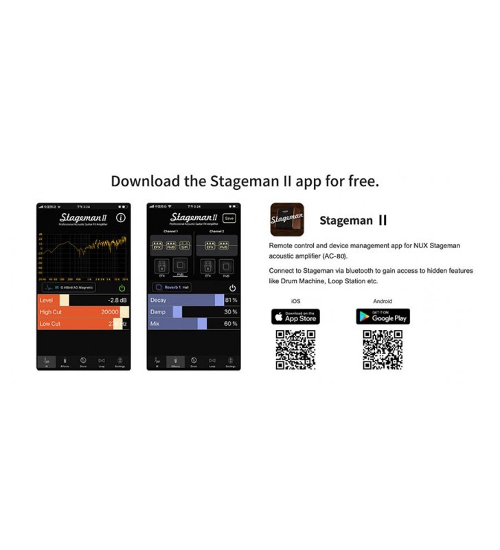 De Stageman II heeft 2 kanalen, beide met een EQ gebaseerd op akoestische gitaar en microfoons. Uitgerust met NUX's nieuwste DSP-technologie levert de Stageman II niet alleen een natuurlijke sound maar ook een rijk volume wat je niet verwacht uit zo een compacte versterker.