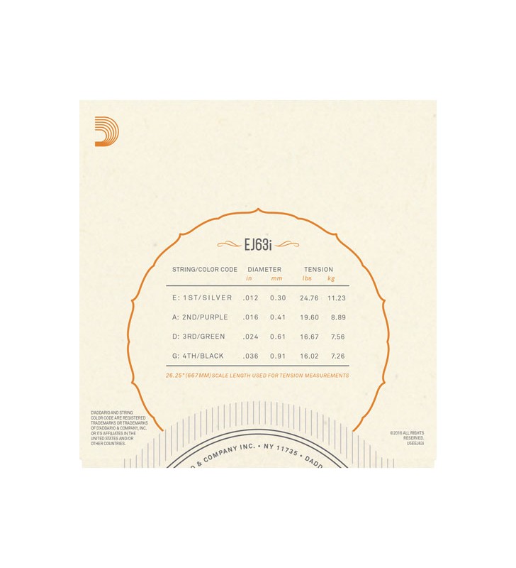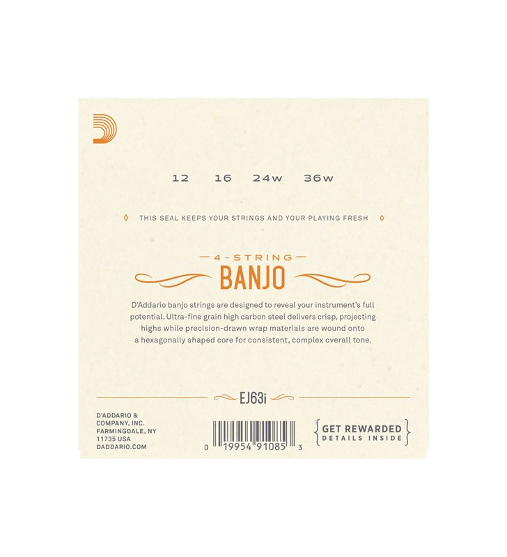 D'Addario EJ63i banjo sets zijn ontworpen voor de Ierse Tenor Banjo, meestal afgestemd in kwinten en gespeeld met een "plectrum" pickingstijl.
