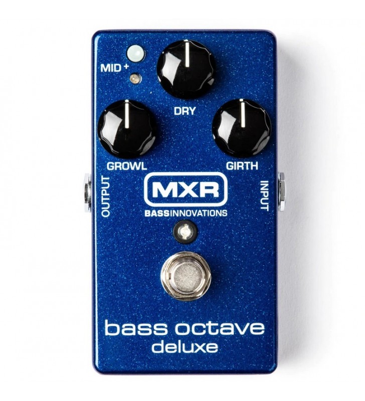 De Bass Octave Deluxe is een tweestemmig octaafpedaal dat een analoge toon, echte bypass en een verscheidenheid aan toonopties biedt. MXR's 18 volt Constant Headroom Technology ™ biedt hoge hoofdruimte en superieure tracking. Gebruik de Dry-knop om je directe signaal te mixen en druk op de Mid + -schakelaar om tot + 14dB intern instelbare middenfrequenties (400Hz of 850Hz) toe te voegen. Mix ten slotte twee afzonderlijk bestuurde octaafstemmen - Growl (voor keelklank) en Singel (voor diepe toon).