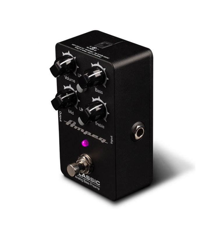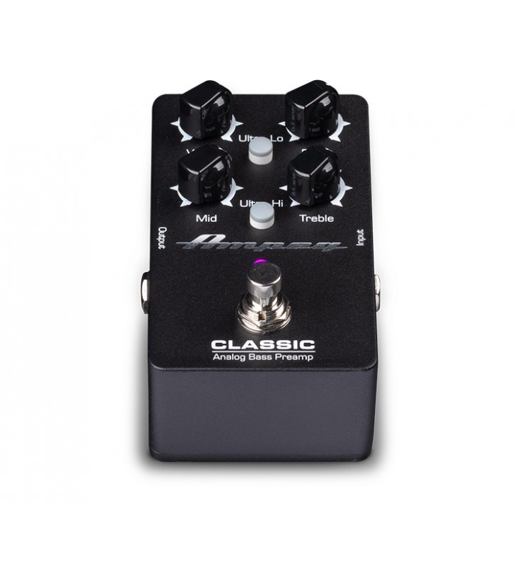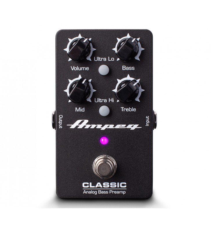 Het Ampeg Classic Analog Bass Preamp-pedaal biedt de belangrijkste tonen van een reeks klassieke Ampeg-versterkers. De 3-bands toonstapel en bijbehorende Ultra-Hi en Ultra-Lo circuits zijn effectieve en efficiënte partners bij het kiezen van professionele Ampeg-tonen.