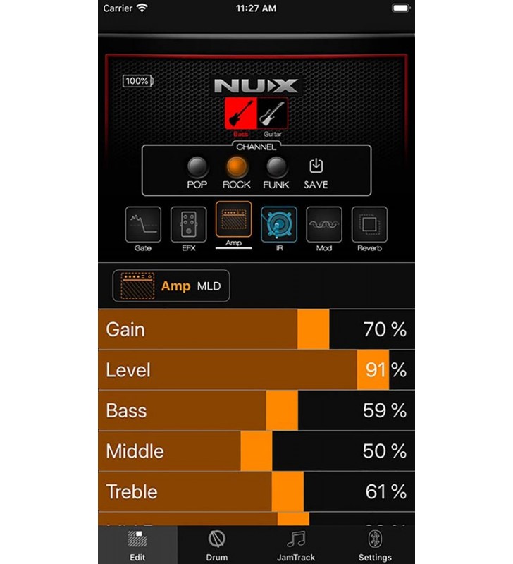 De Bluetooth van de NUX Mighty Air kan meer dan alleen audio afspelen, hij wordt ook geleverd met 9 ingebouwde EQ-presets die in sommige gevallen handig kunnen zijn. Laten we zeggen dat als je wilt meespelen met een nieuwe song en je kunt de achtergrondtrack niet vinden, het gebruik van de preset Guitar Cut het gitaarsignaal automatisch zal elimineren.