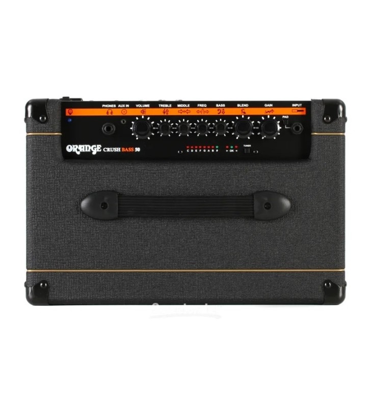De compacte combo Crush Bass 50, geïnspireerd op Orange's vlaggenschip AD200- en OB1-basversterkers, combineert op perfecte wijze enkele van de meest bepalende elementen van elk. Het heeft de essentie van een opnameversterker en levert warme, zuivere bastonen, vintage grommen met vette lage tonen en mengbare overdrive.