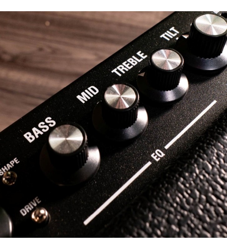 Draadloze, oplaadbare, 10 Watt stereo desktop gitaarversterker met dsp effecten icm met de Mighty App en 2,4gHz draadloze zender.