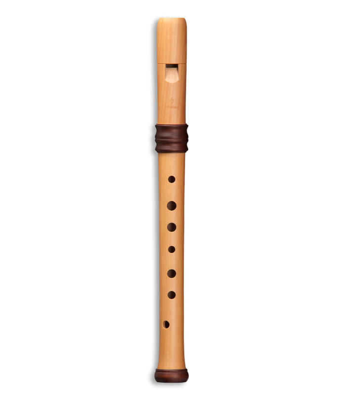fantasievol en karakteristiek: heeft de vorm van een middeleeuwse blokfluit; gebeitst perenhout, donker gebeitste sierringen
