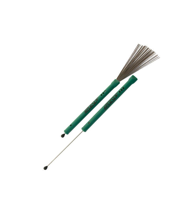 De lengte regelstang heeft ook een "bal" van acetaalhars (POM) aan het distale uiteinde dat de borstel, eenmaal gesloten en ondersteboven, bruikbaar maakt als een traditionele houten drumstok.
