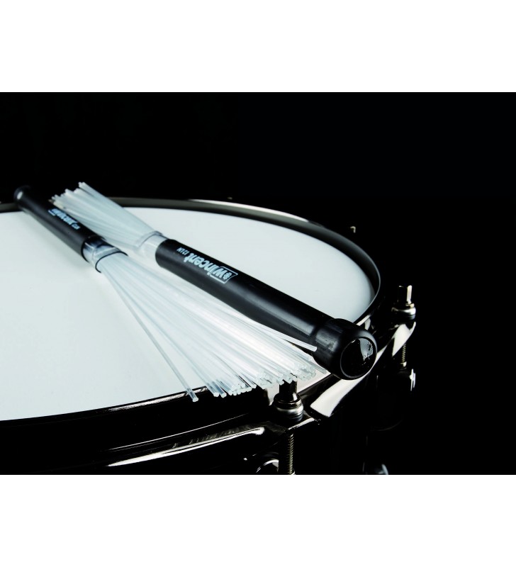 Een intrekbare plastic brush met dunne flexibele haren voor fusion en jazz.