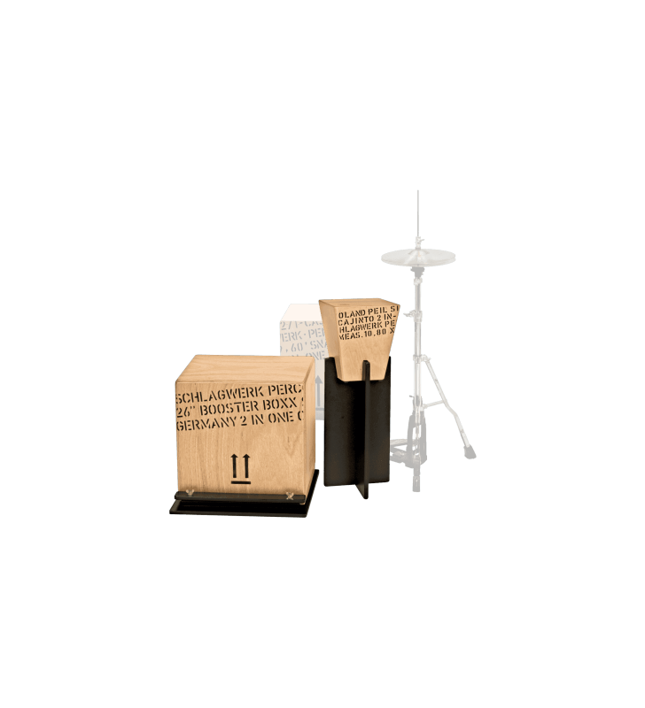 Bestaande uit Booster Boxx, incl. basisplaat en Roland Peil Signature Cajinto met vloerstandaard (Hi-Hat en CP404 niet inbegrepen).