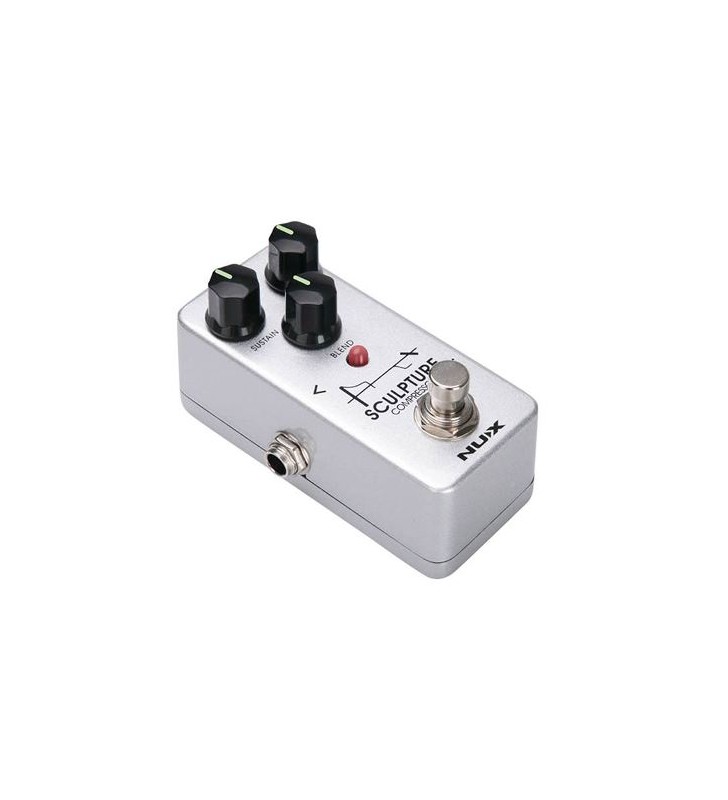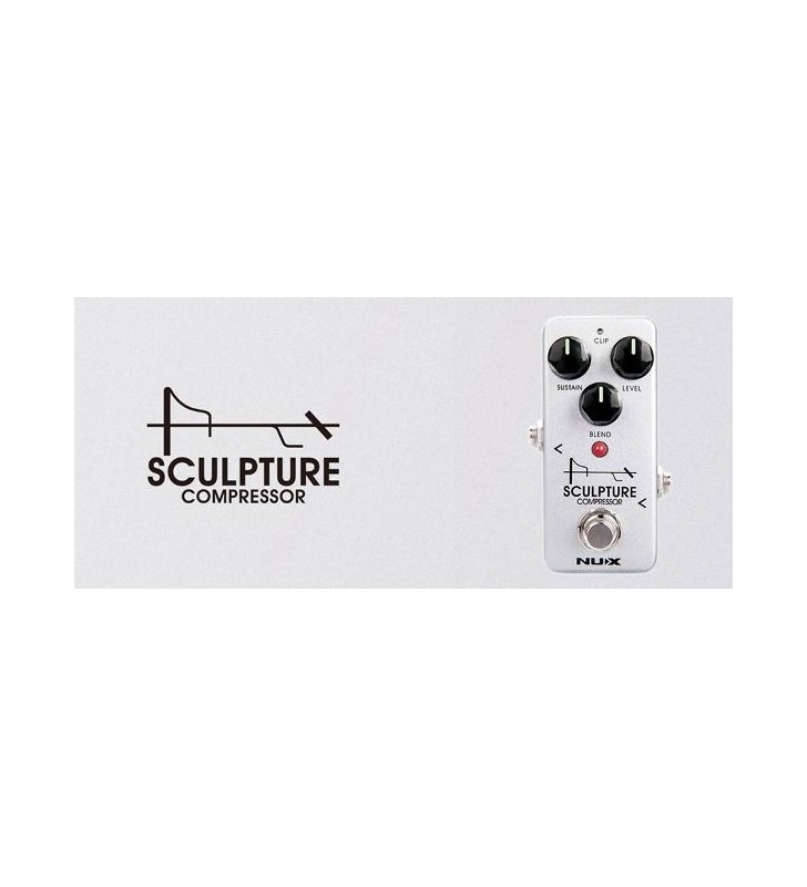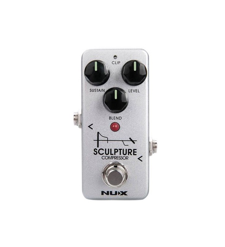 Het NUX Sculpture-compressorpedaal biedt een consistent uitgangsvolume en verscherpt de signalen aan de boven- en onderkant. Wanneer je op je gitaar begint te tokkelen, worden de luide (piek)noten opgeschoond en de duurzaamheid verhoogd door het niveau van de wegstervende (stille) noten te verhogen. Sculptuur draagt ook bij aan de signaalbasis die in de rest van je effectenketen wordt ingevoerd.