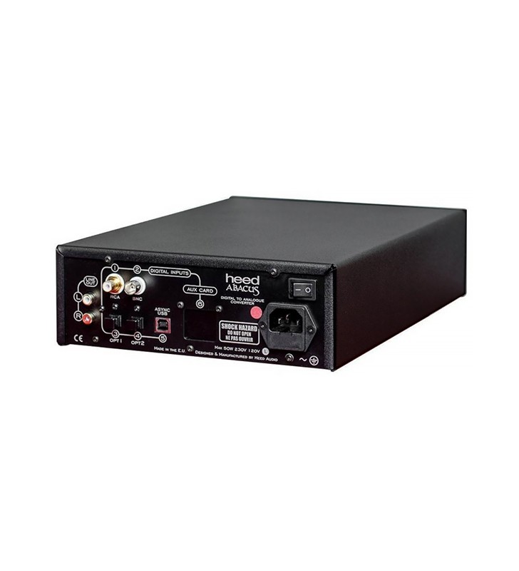 De Abacus is een D/A omzetter, ook wel DAC, uitgerust met 5 schakelbare inputs (RCA, BNC, 2 x Optisch en asynchrone USB B).