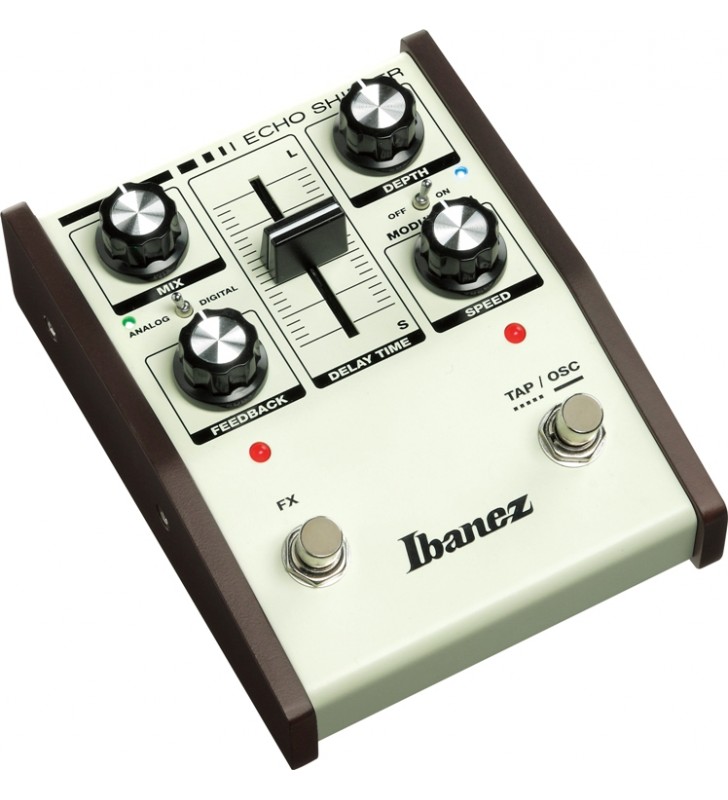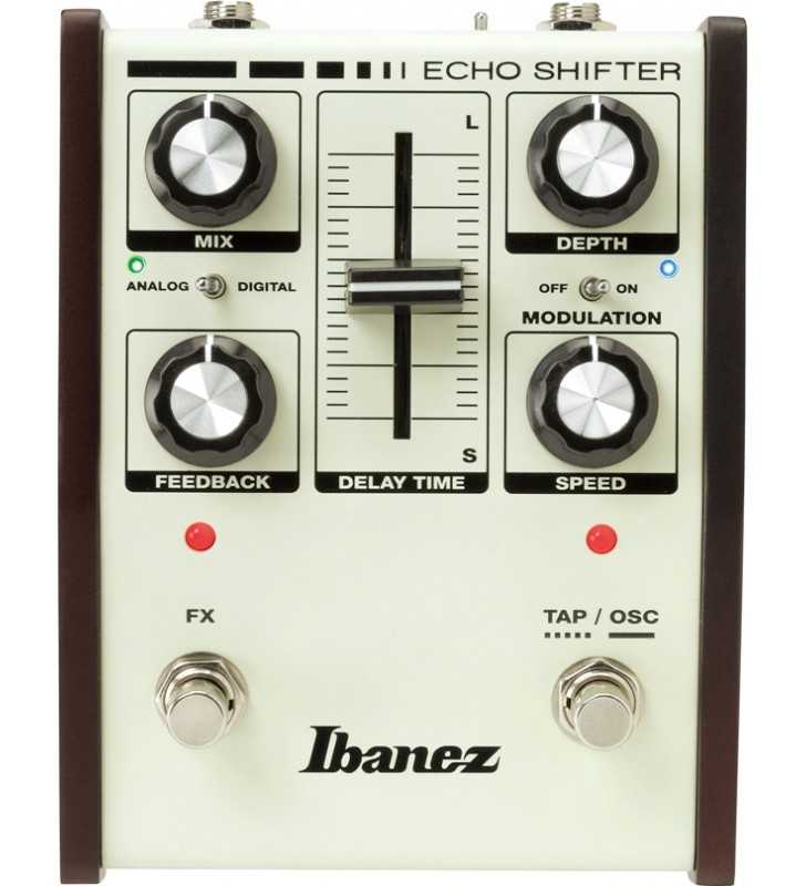 De ES3 Echo Shifter is uitgerust met zowel analoge als digitale delay-modi. De analoge instelling biedt een warme, natuurlijke toon met delay-tijden tussen 40 ms en 600 ms, en in tegenstelling tot andere digitale pedalen die simpelweg analoge delay simuleren, is de ES3 daadwerkelijk uitgerust met analoge schakelingen. De digitale modus biedt langere delay-tijden tot wel 1500 ms. Het pedaal bevat ook een nieuwe modulatiesnelheidsregeling die meer opties biedt om het effect aan te passen aan de unieke voorkeuren van de speler. In tegenstelling tot de ES2, waar de oscillatiefunctie handmatig moest worden ingeschakeld met behulp van een mini-tuimelschakelaar, kan deze functie eenvoudig worden ingeschakeld door op de rechtervoetschakelaar te stappen en deze ingedrukt te houden. Dit maakt het mogelijk om snel de kwaliteit en textuur van de delay halverwege de uitvoering te veranderen. Het pedaal neemt de fader delay-tijdregeling, delay tap-schakelaar en oscillatie- en modulatiemodi van de ES2 over. Het gecombineerde resultaat van deze upgrades is een bruikbaarder pedaal met een grotere tonale veelzijdigheid en verbeterd muzikaal potentieel.