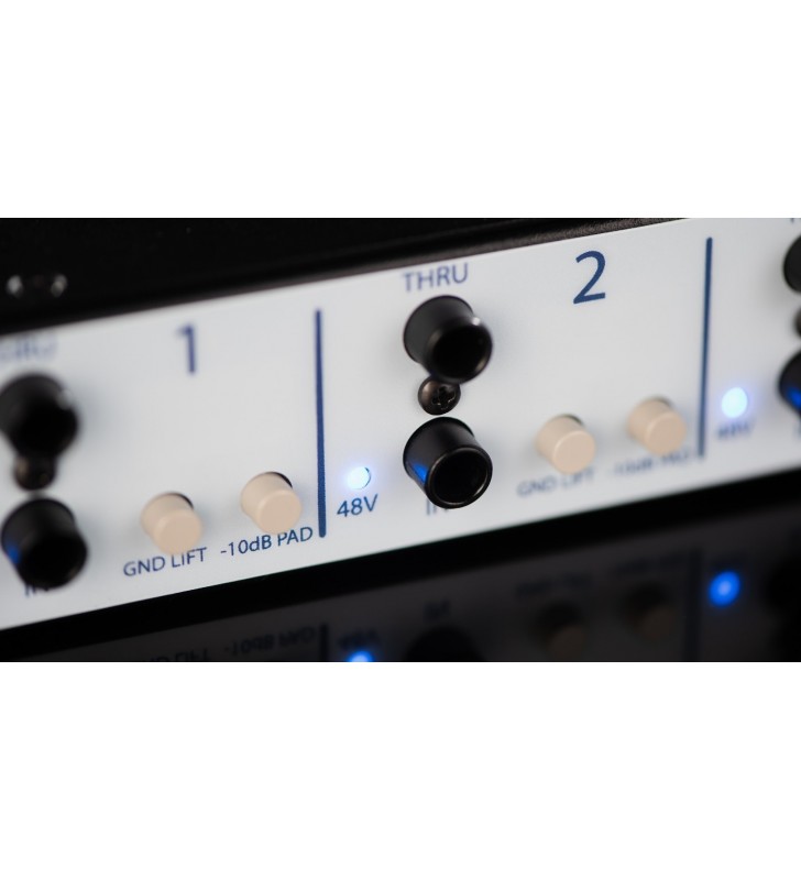 De high-impedance (2MΩ+) FET-ingangversterkers, gevoed door 48V phantom, voorkomen ongewenste vervorming en behouden zowel de warmte van het middengebied als de helderheid van de hoge tonen. De harmonischen verrijken het originele signaal op een muzikale manier zonder kunstmatige kleuring. Dankzij het volledig discrete ontwerp zijn er geen IC’s of digitale componenten die de toon kunnen beïnvloeden.