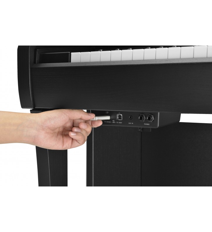 • Verbeterd GrandTouch-S Klavier met toetsbeleg van synthetisch ebbenhout en ivoor (hout wordt gebruikt voor de witte toetsen)