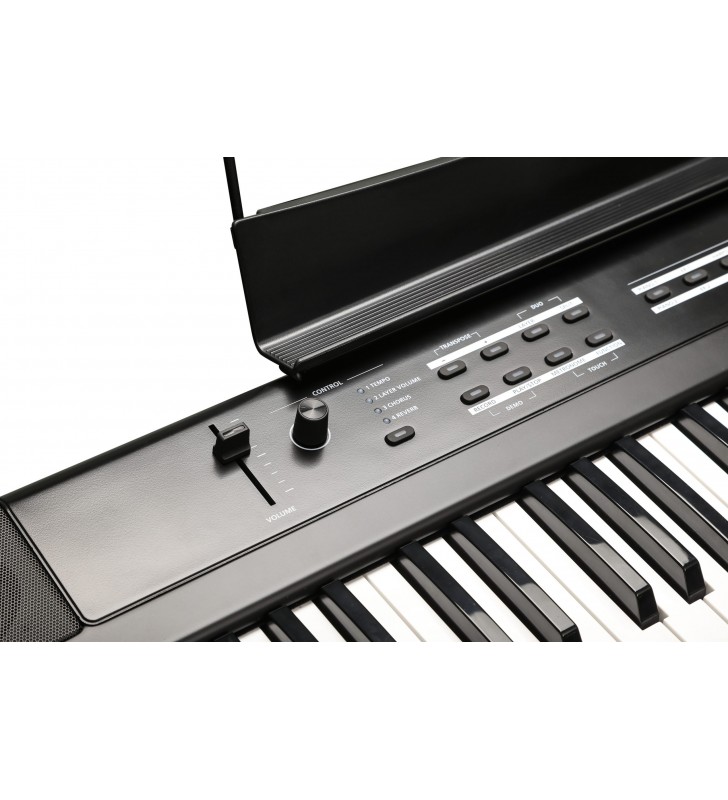 Semi-gewogen keyboard met 88 toetsen en instelbare aanslaggevoeligheid.