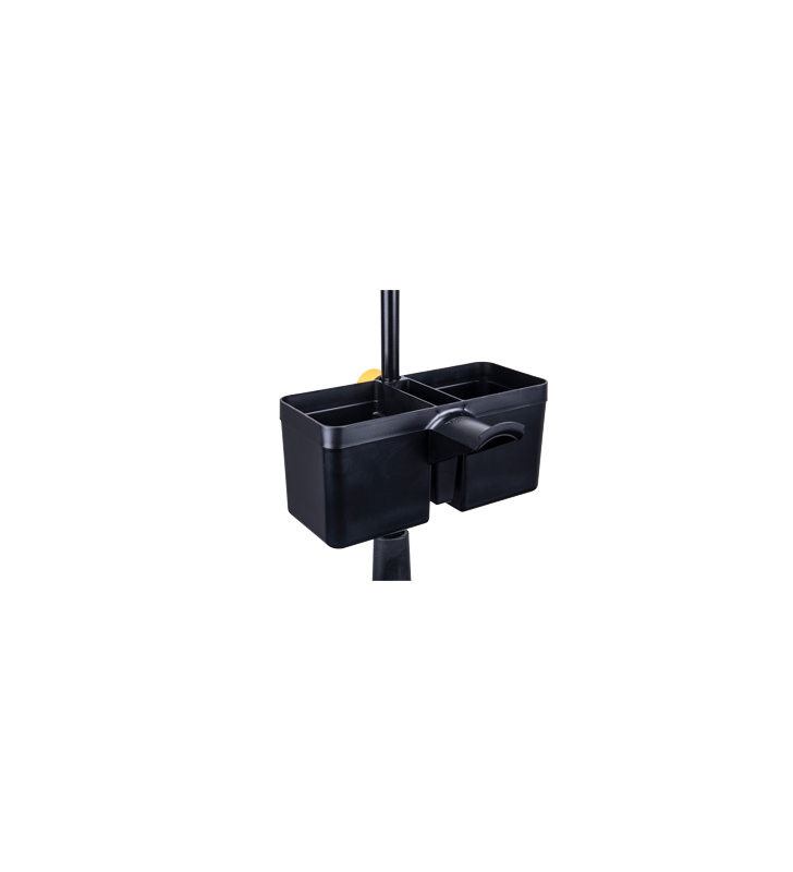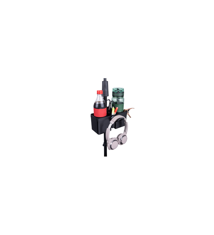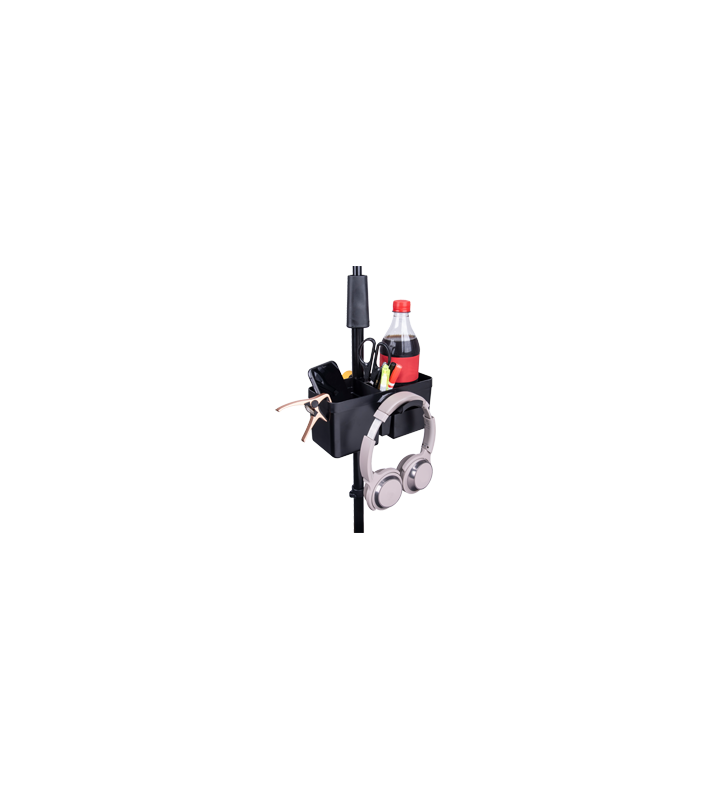 Praktische bekerhouder voor twee drankjes of extra accessoires zoals een mobiele telefoon. Een aansluiting voor het handig opbergen van een koptelefoon is ook geïntegreerd. De bekerhouder kan snel en eenvoudig worden bevestigd aan 14 - 23 mm brede oppervlakken met behulp van de draaiknop. Bijvoorbeeld op onze HCMS-432B of HCMS-434B microfoonstandaards.