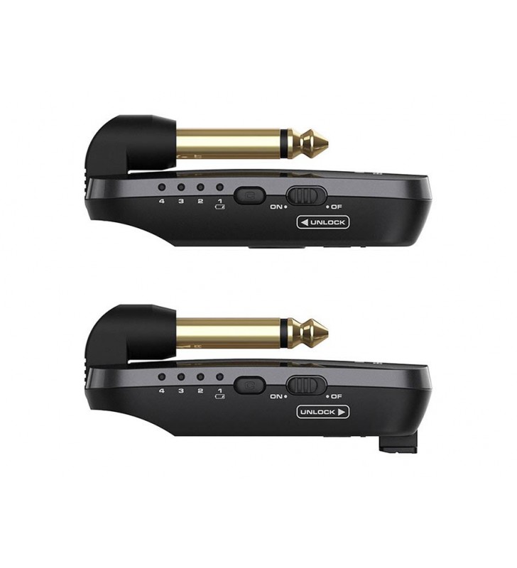 Steek de zender in je gitaar, steek de ontvanger in je versterker of effectpedaal; zet zowel de zender als de ontvanger aan en je bent klaar om te gaan. Je kunt ook profiteren van de vier optionele kanalen wanneer je met je vrienden speelt.