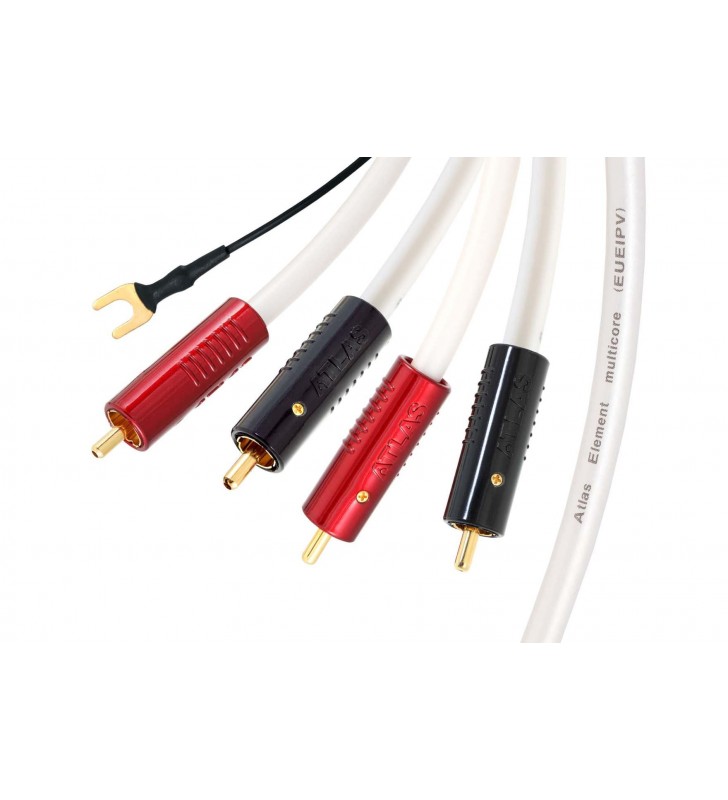 De Element Turntable-kabel is uitgerust met onze Achromatische niet-magnetische RCA-stekkers en aardingstags met schoppen.