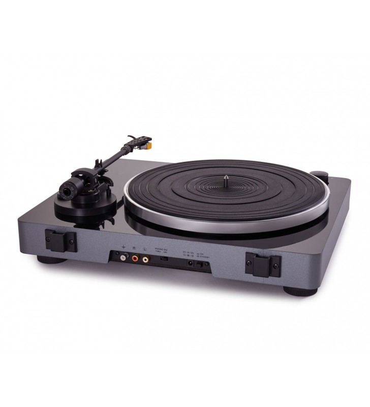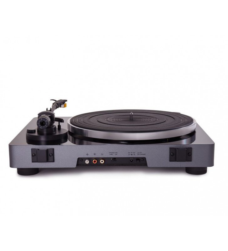 - Uitgang: RCA L/R + aarde (ingebouwde RIAA voorversterker in/uit schakelbaar)