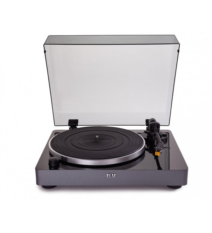 Het gegoten aluminium draaiplateau wordt aangedreven door een snaar.