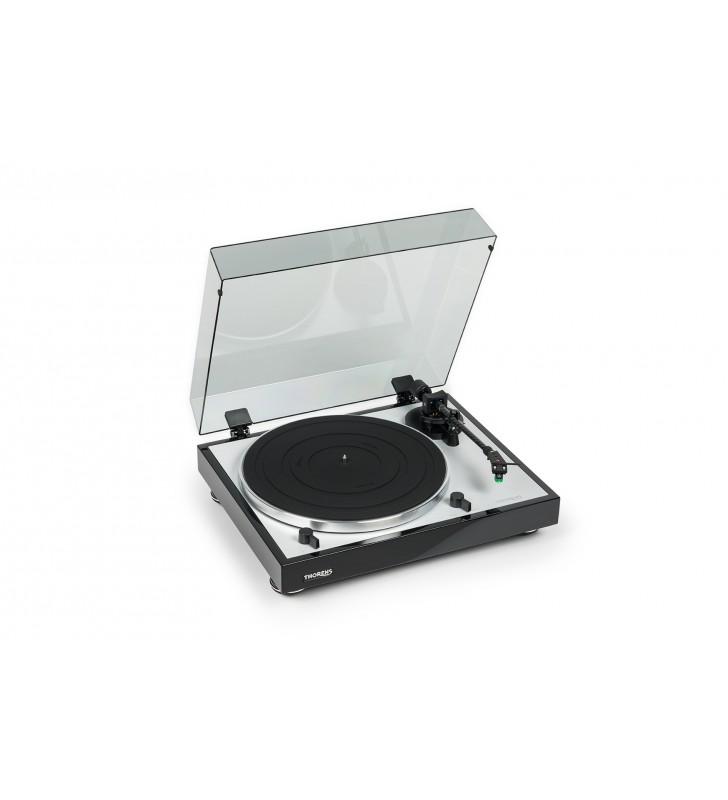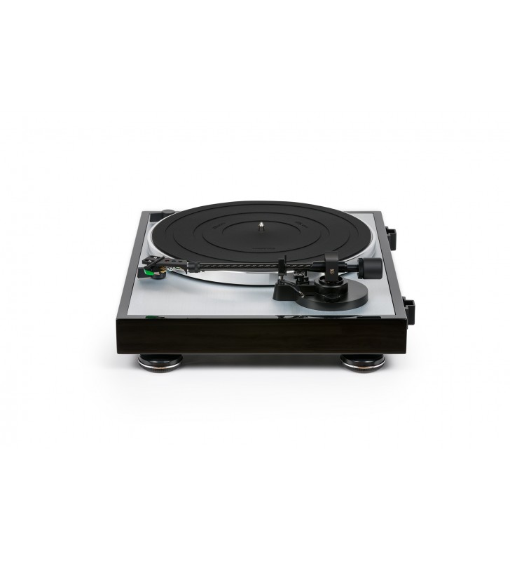 Deze fraaie Thorens draaitafel is voorzien van een Direct Drive motor voor stabiele gelijkloop en bezit een geïntegreerde phono voorversterker.