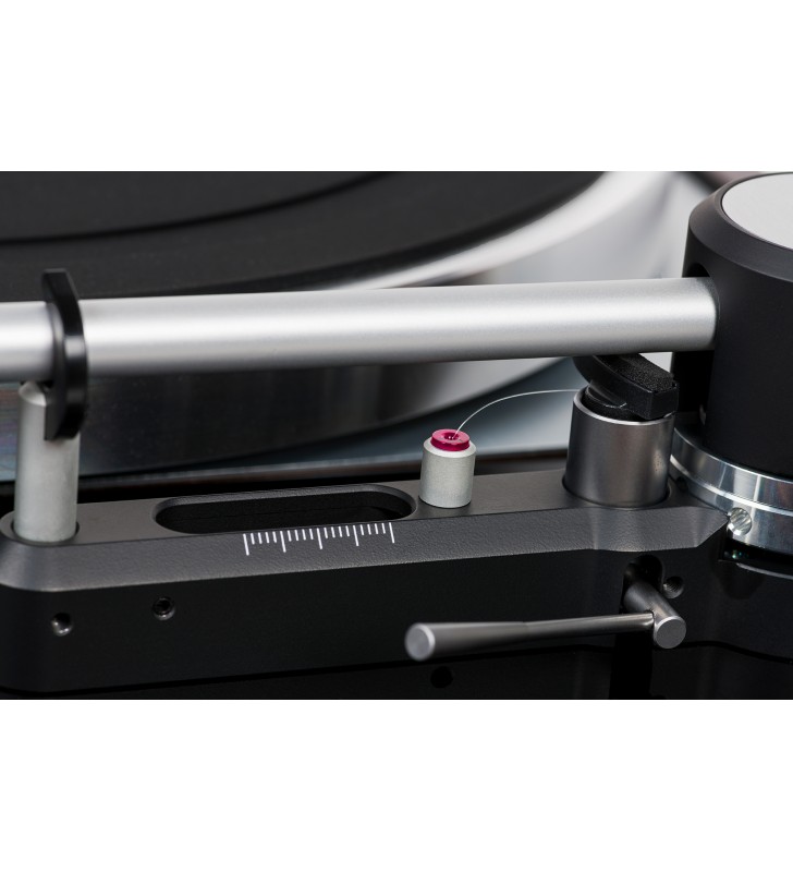 Zo is elke veer van het TD 1500 subchassis vanaf de bovenkant instelbaar, simpelweg te bereiken via de voorboringen in het draaiplateau. Hiermee kan een volledig horizontale balans moeiteloos worden ingesteld, wat de optimale weergave van vinyl natuurlijk ten goede komt.