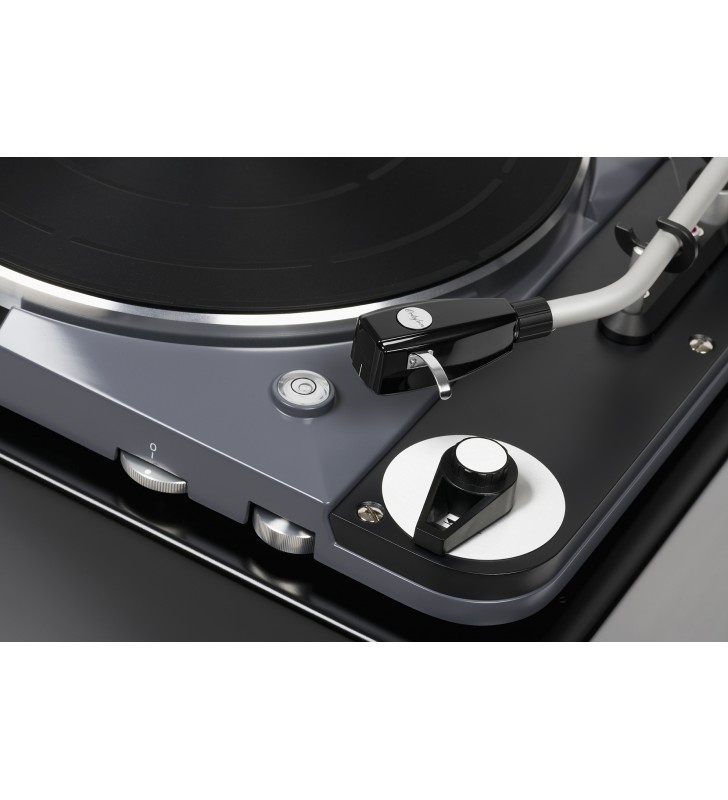 Deze kan in alle parameters nauwkeurig worden afgesteld op de cartridge naar keuze en is voorzien van een innovatieve anti-skating-oplossing met een robijnrode lager en een gepatenteerde elektrische toonarmlift om het voorzichtig plaatsen en verwijderen van de stylus te vergemakkelijken.