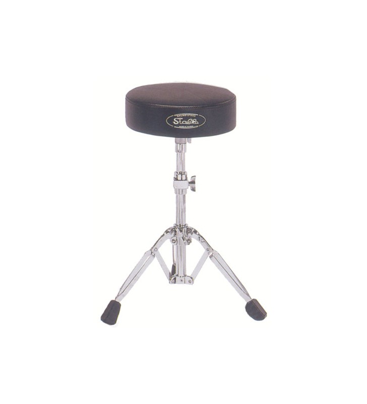 Professionele Drum kruk. Zwart met memory Lock, dubbelbenig en ronde zitting, skai