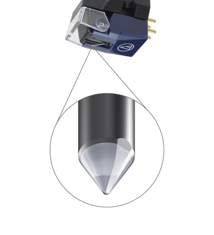 Standaardmodel met een elliptische gelijmde naald. Vermindert aftastvervorming en biedt een nauwkeuriger geluidsweergave.