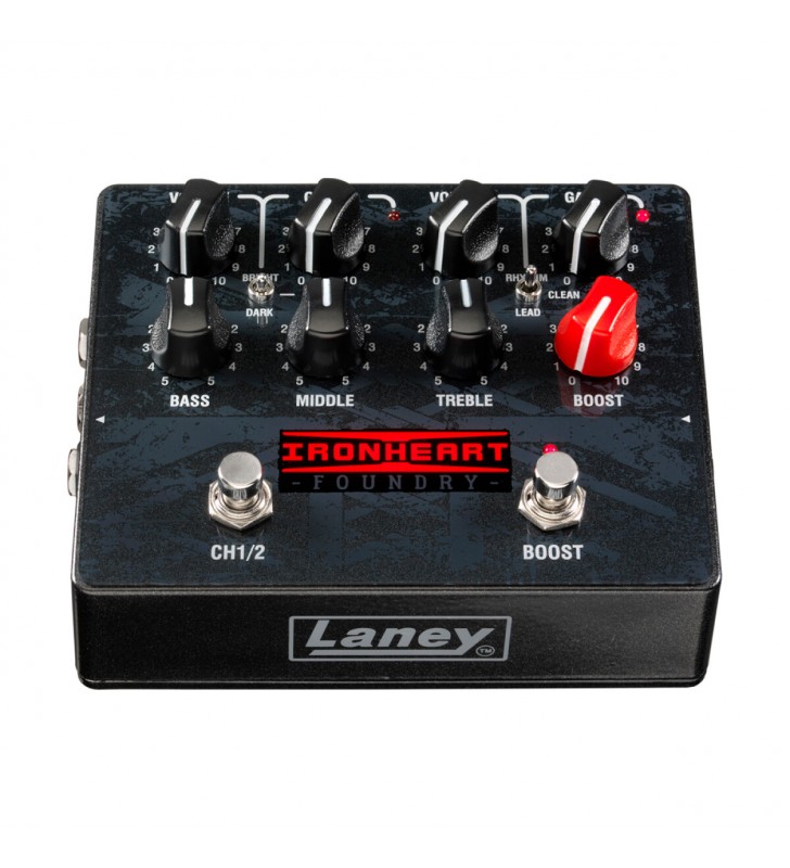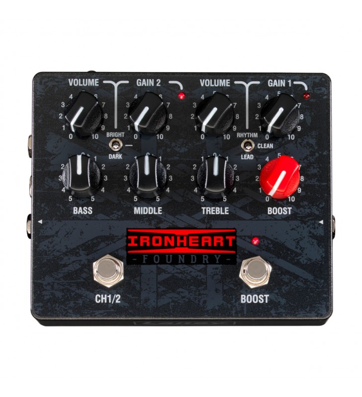 De Loudpedal is geen distortion pedaal of effect. Dit is een echte, 2 kanaals, 60 watt versterker in pedaalvorm. Ieder kanaal heeft een schakelbare boost en het clean kanaal heeft een 3 modes waardoor je op 8 verschillende sounds uitkomt. Je kunt het pedaal direct op een gitaar cabinet aansluiten of via de XLR DI naar een PA sturen. De DI heeft een optionele speaker sim. Als je deze uit zet kun je ook je eigen IR Loader gebruiken. Het pedaal heeft ook een effects loop. Hoewel de Ironheart bekend staan om de high gain sounds, kun je uit de Loudpedal ook hele mooie clean en licht overstuurde, blues tones halen.
