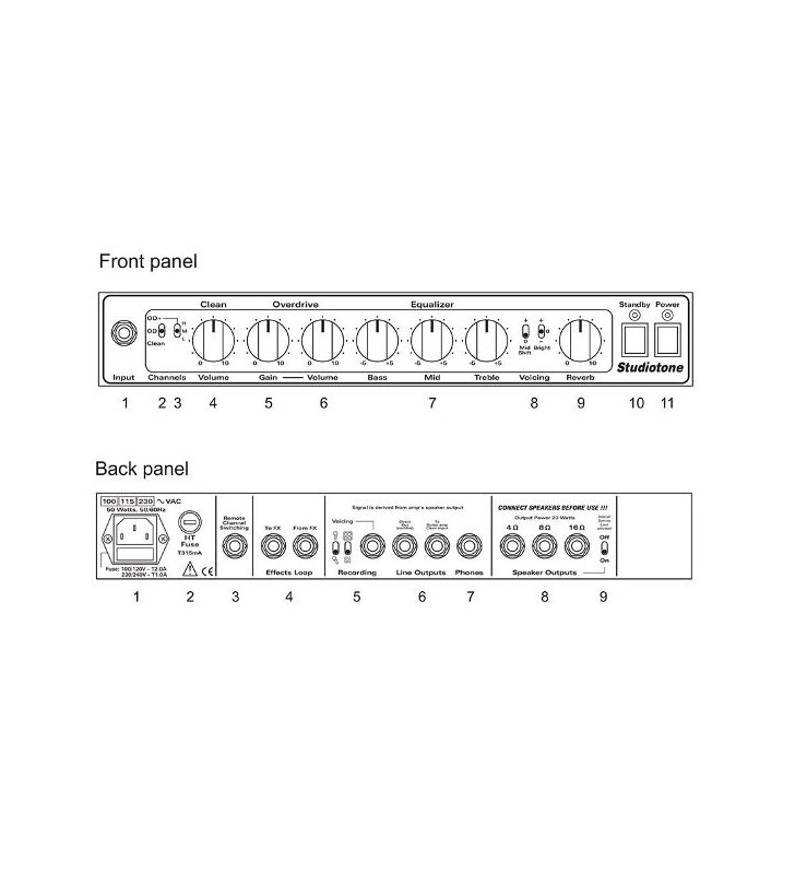 De drie kanalen (Clean, Overdrive &; Overdrive+) bieden je van ronde, warme klanken tot de rijke EL84 Overdrive &; Compressie. Met de 2-weg "Mid Shift"-schakelaar kunt u de middenfrequenties met 800 Hz verhogen, en met de 3-weg "Bright"-schakelaar kunt u de hoge frequenties verlagen of verhogen om het hogere bereik nauwkeurig af te stemmen. Op de achterkant zijn echter enkele verrassingen te vinden. Een seriële effectenlus, een opname-uitgang met "microfoonplaatsing" en luidsprekersimulators, twee lijnuitgangen (één ongefilterd en één laag niveau) en één "hoofdtelefoonuitgang"-aansluiting. Luidsprekeruitgangen van 4, 8 en 16 ohm maken elke combinatie van luidsprekers mogelijk, en dankzij de ingebouwde Power Soak en luidspreker aan/uit-schakelaar kan de versterker spelen terwijl de luidspreker uit staat voor opname of hoofdtelefoon. Een veergalm geeft de Koch Studiotone de klankrijkdom die je zou verwachten van een klassieke buizencombo. Wij zijn van mening dat de Koch Studiotone een van de meest veelzijdige en compacte gitaarversterkers is die momenteel op de markt zijn.
