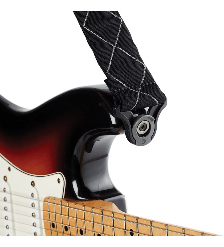 D'Addario heeft het meest eenvoudige systeem ontwikkeld om je gitaar of bas veilig te dragen.