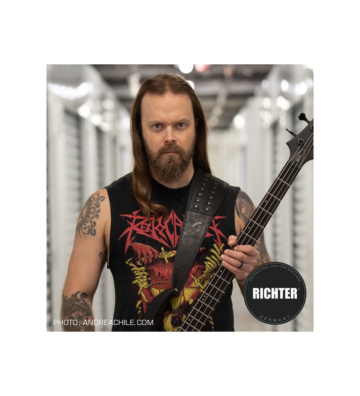Handgemaakt in Duitsland, premium gitaarband gemaakt van kunstleer. Dit is de signature gitaarband van de bassist van het grote Soulfly van Max Cavalera. Ook geschikt voor gitaar.