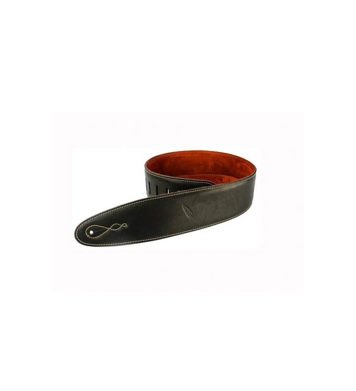 Leren gitaarriem, Zwart, gevoerde zwarte achterzijde.