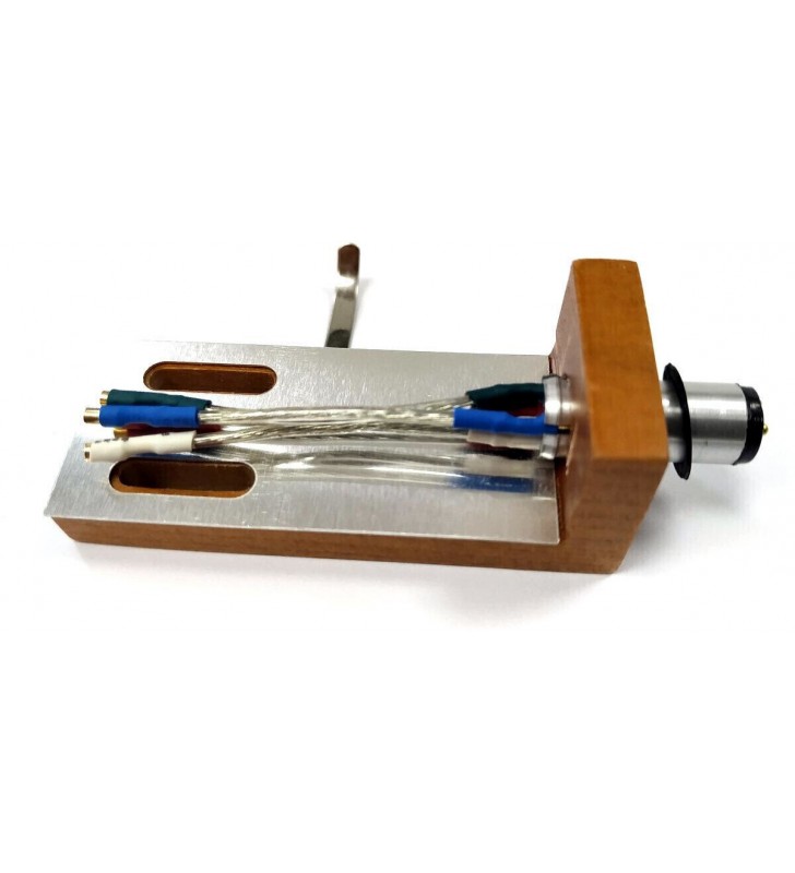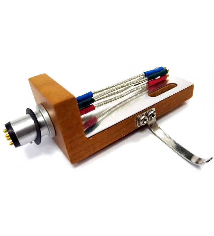 De headshell heeft verzilverde gedraaide OFC-aansluitkabels met vergulde pinnen.