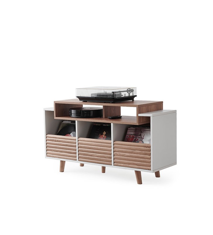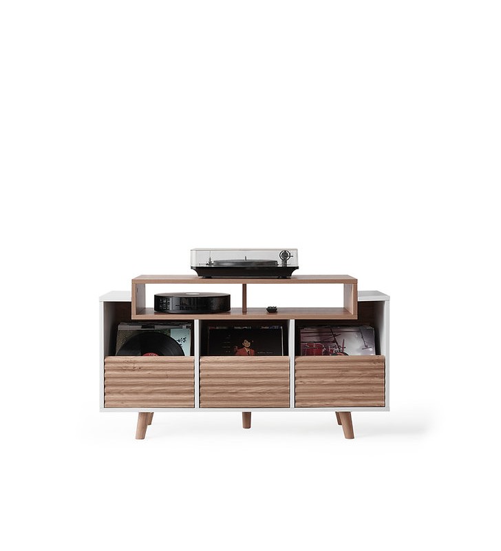 De perfect bemeten bovenste plank is ideaal voor het tentoonstellen van uw platenspeler en het creëren van een verfijnde, functionele luisterruimte.