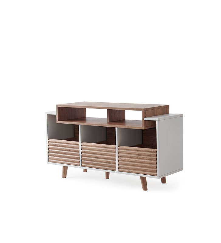 Verkrijgbaar in twee afwerkingen - Zwart/Walnoot en Wit/Licht Eiken - past hij perfect in elk interieur en voegt hij een eigentijdse en elegante toets toe.