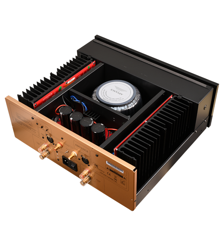 Een ander onderscheidend kenmerk van de versterkers van Advance is de HIGH BIAS-schakeling, waardoor de versterker lagere vermogens zal versterken als een Klasse-A versterker (schakelbaar) tot ca. 45Watt.