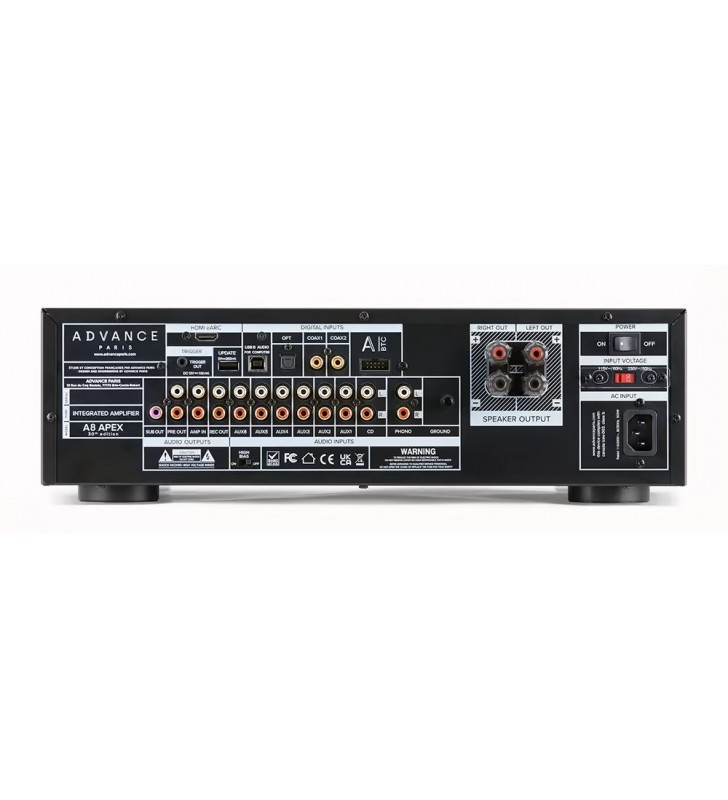 Aan aansluitmogelijkheden zal het je bij de A8 APEX zeker niet ontbreken. Of je nu digitale of analoge bronnen wilt koppelen, een subwoofer wilt toevoegen, of schakelt tussen PRE OUT en AMP-IN: deze versterker past zich moeiteloos aan jouw setup aan.