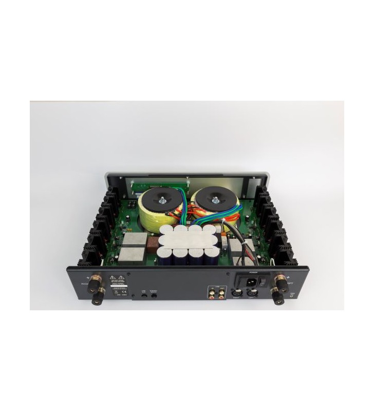 De hele versterker is dual mono opgebouwd en dat begint al bij de voeding.