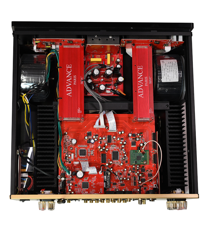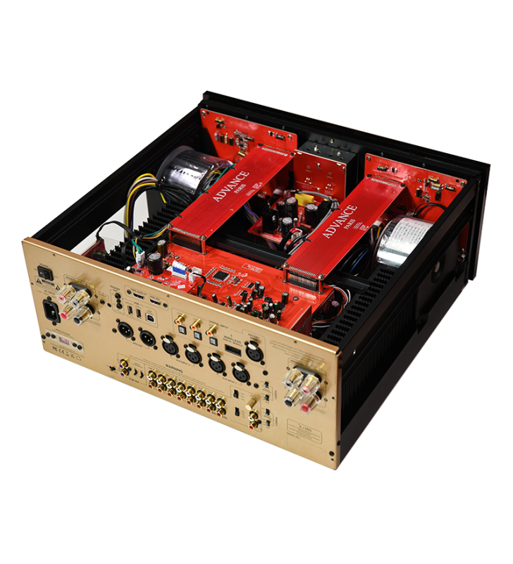 Voor de eindversterker wordt niet gekozen voor buizen, omdat Advance kiest voor voldoende kracht, dynamiek en betrouwbaarheid.