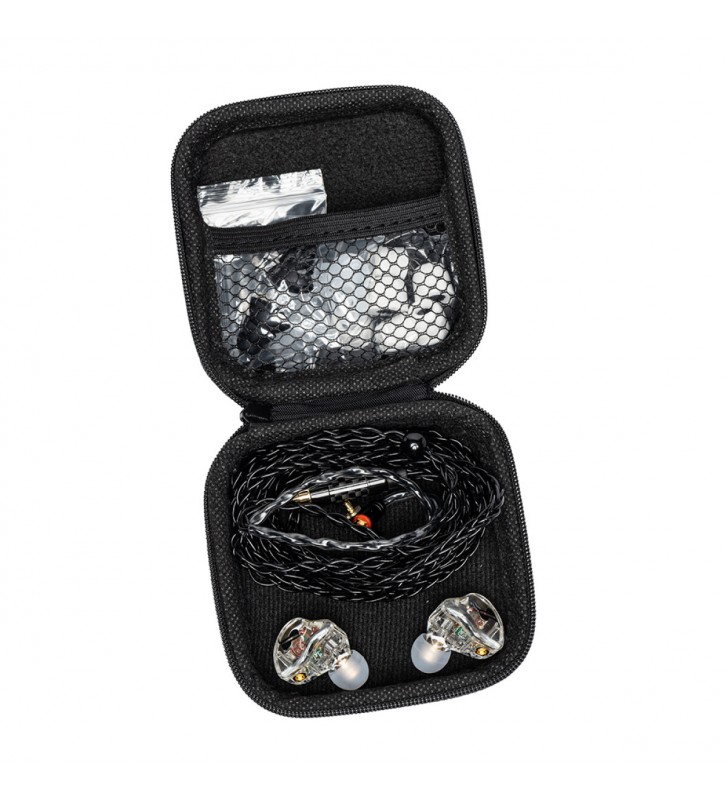 In-ear monitoring hoofdtelefoon met 1,3 m kabel en 3,5 mm jack, zacht etui, ooradapters - Doorzichtig